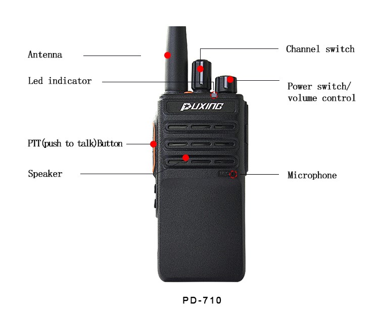 PD710 is a digital radio, no screen and no keyboard, simple appearance and operation, compact structureure and good performance in drop resistance. The radio has IP54 dustproof and waterproof grade, can use in most environments. PD710 supports analog and digital modes swith to improve efficiency. It also equips basic voice encryption to protects users' calls. 1,600mAh battery can satisfy daily calls. The AMBE+2 vocoder provides a superior sound quality. The voice anunciation function, needn’t visual radio, voice can anunciate the current channel.